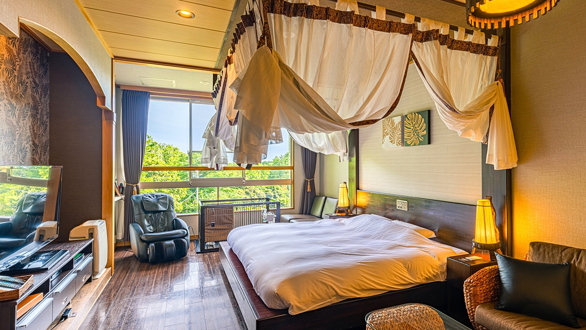 バリ風洋室 天蓋つきキングダブル2〜3名様用